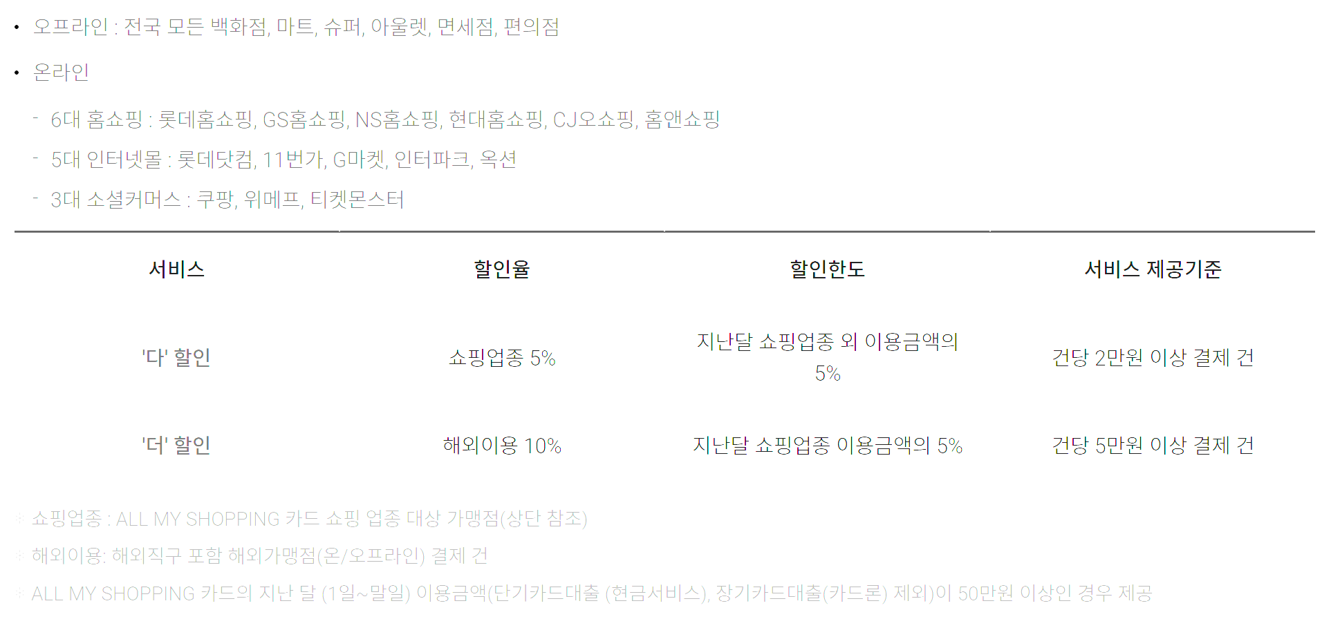 오프라인 매장 기준, 기타 할인서비스와 중복 적용 불가